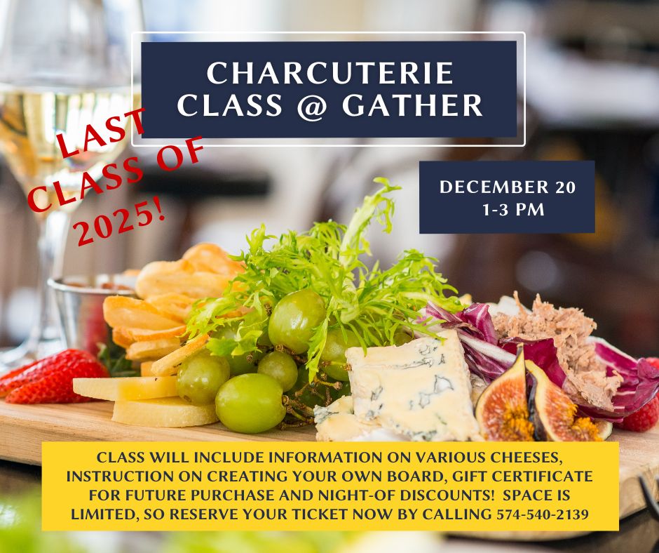 Join us to learn about cheese, charcuterie meats and more! We will help you put together a board to take home, talk about different cheeses, laugh and have some fun! You will leave with a gift certificate for a future purchase and get great discounts the day of the class - maybe even finish up some holiday shopping for that hard-to-buy for person on your list!